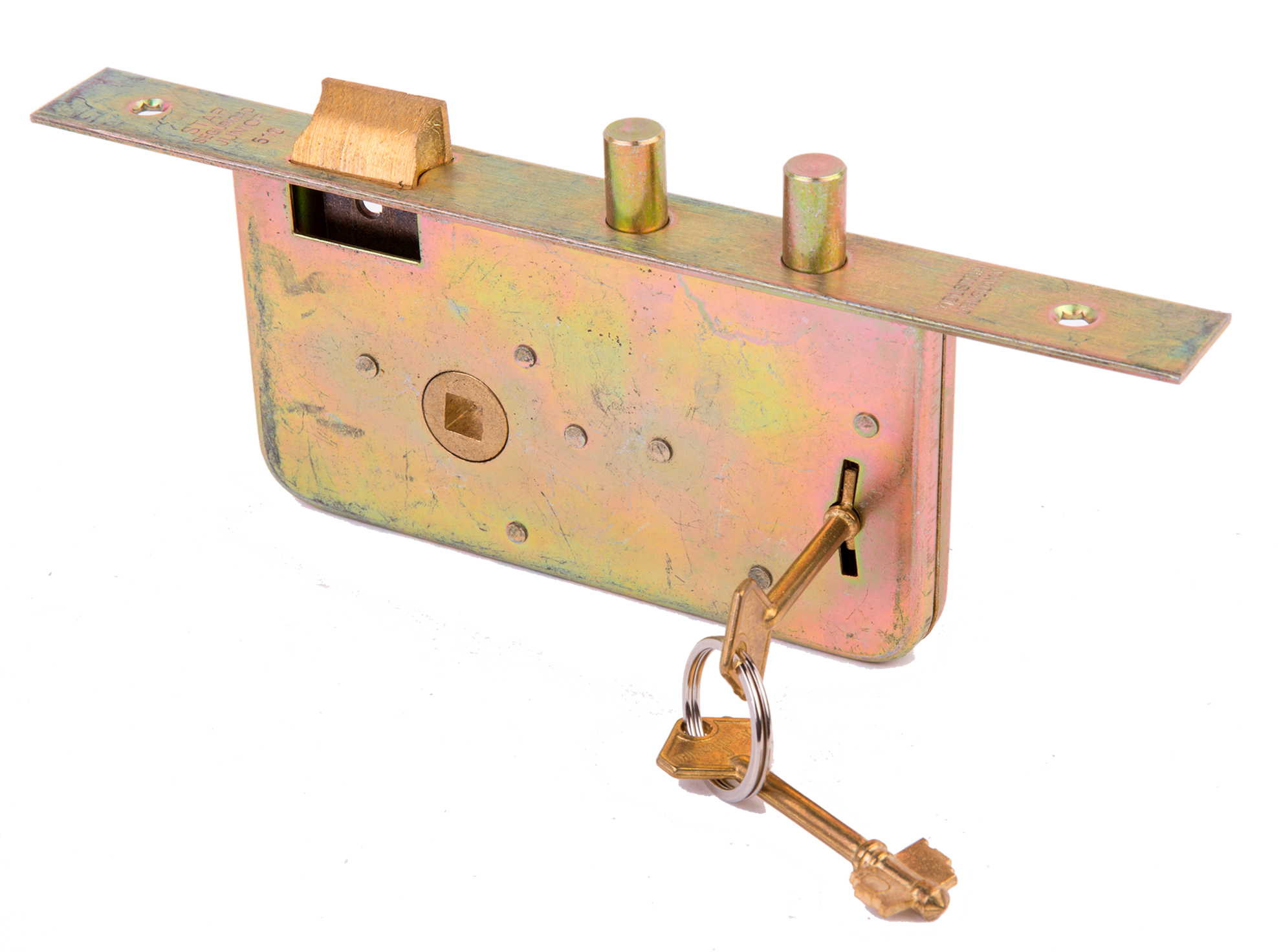 Cerradura con dos pasadores redondos Caja y frente de hierro con proceso anticorrosivo DUO - ZINC