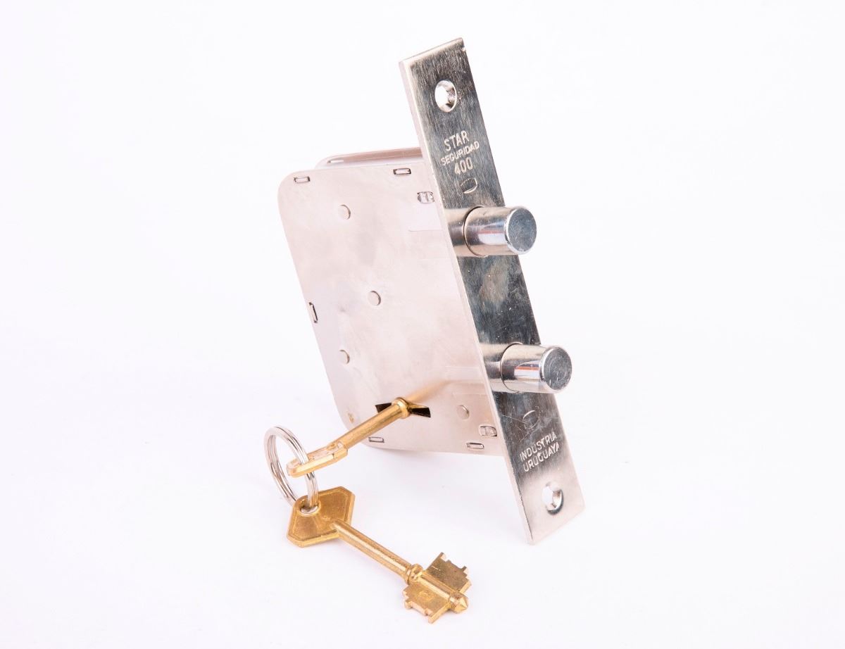 Cerrojo con dos pasadores redondos giratoriosFrente de bronce niquelado