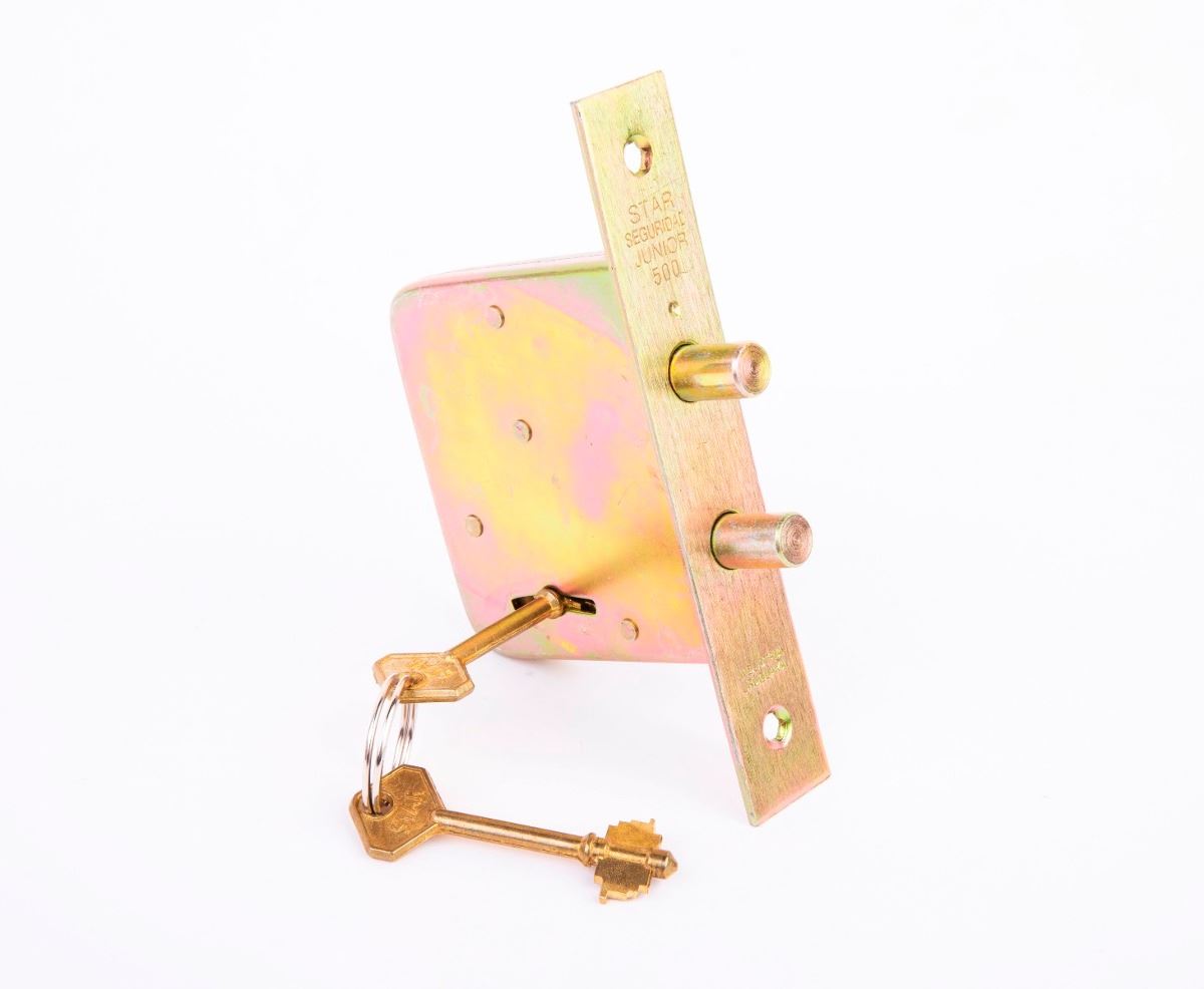 Cerrojo con dos pasadores redondosCaja y frente de hierro con proceso anticorrosivo DUO - ZINC