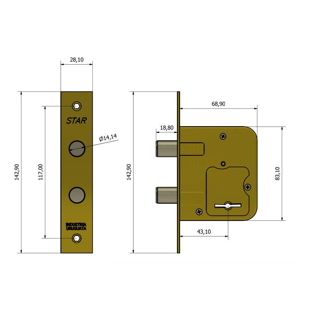 Cerrojo “Seguridad” 2 pasadores redondos giratorios.