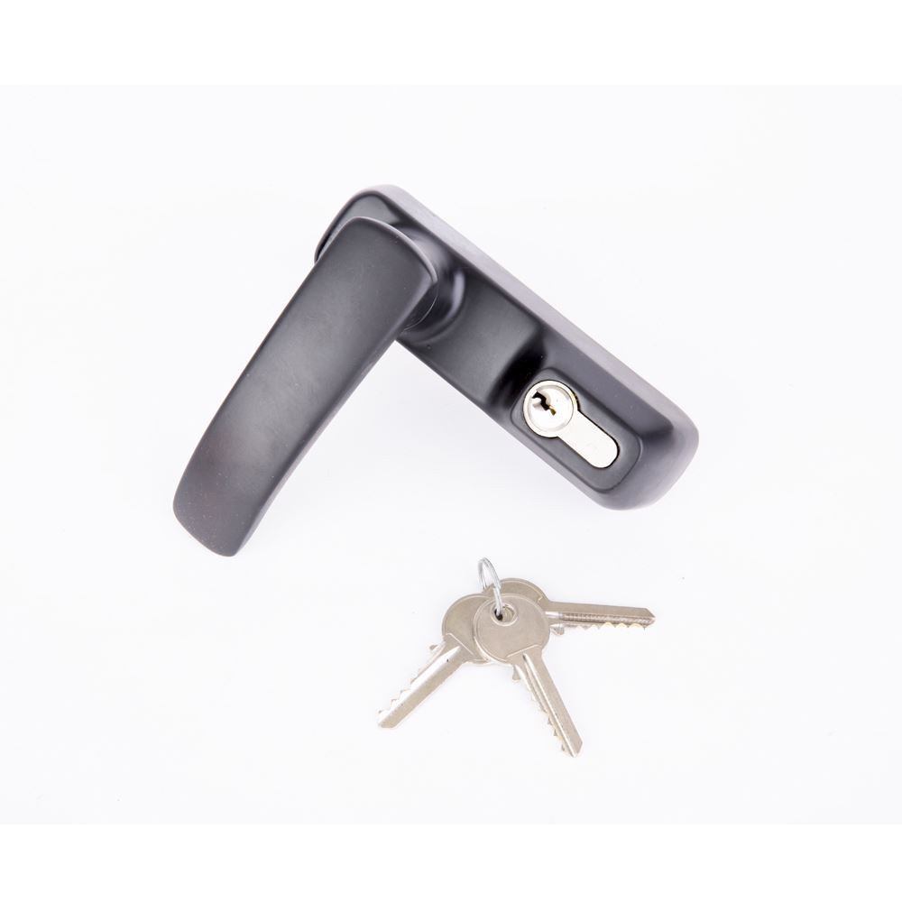 Cerradura para barra de aplicar, manija y cilindro integrado.