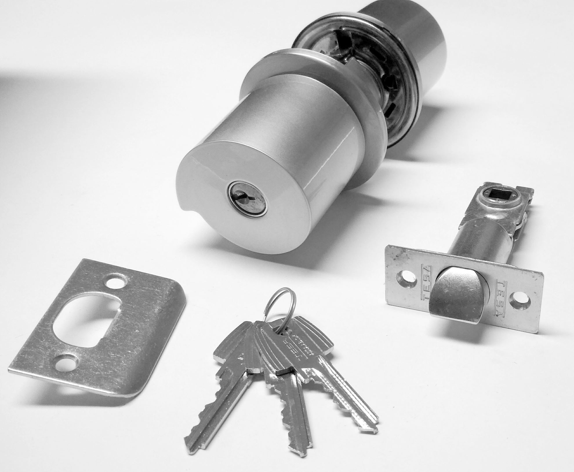 El pomo Tesa modelo Coma niquelado mate, deja perfectamente equipadas las puertas metálicas.